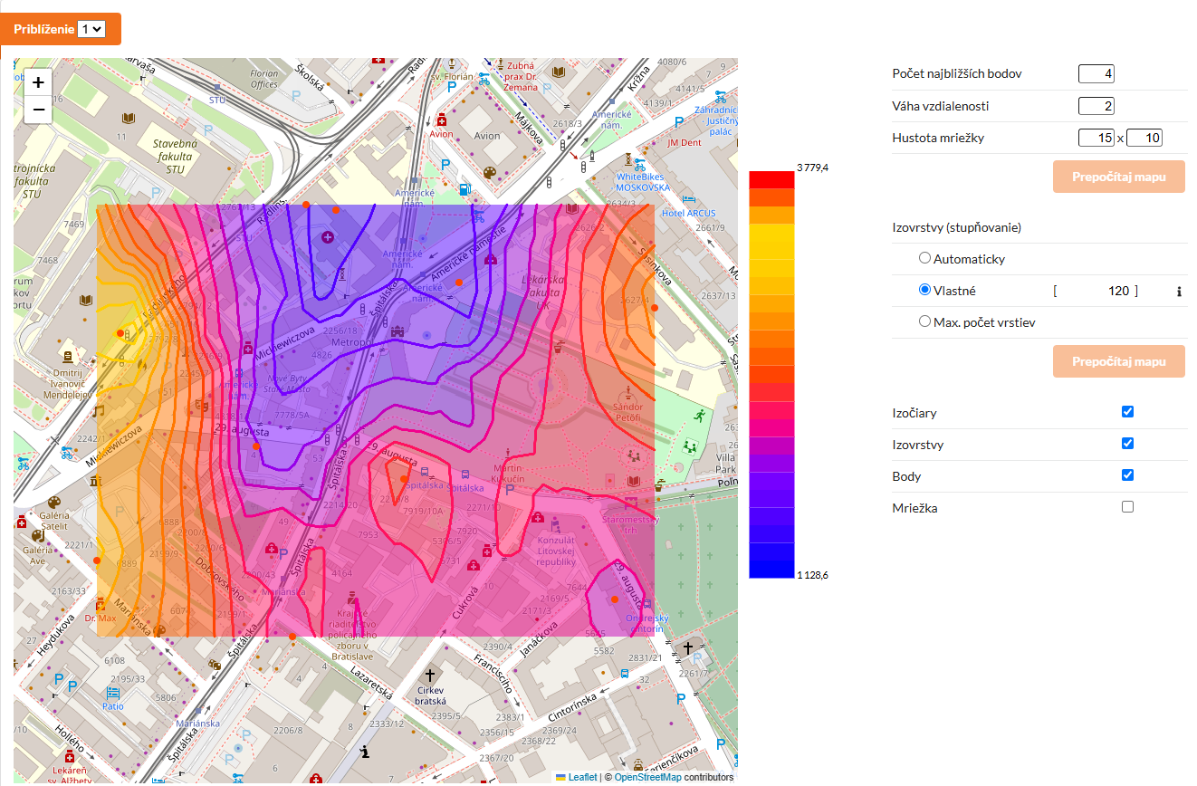 a vykreslenie cenovej mapy vypočítanej zo záznamov